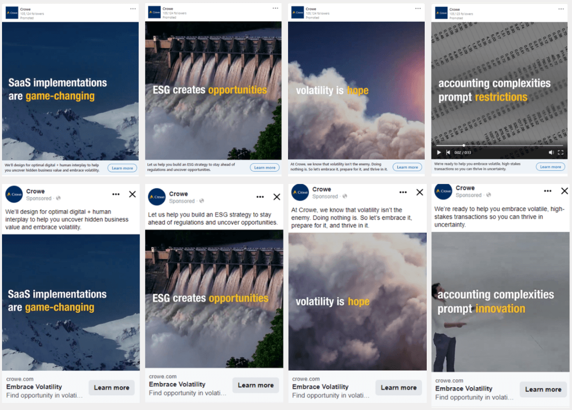 These results demonstrate that Crowe successfully overcame its initial challenges, effectively establishing its brand in a competitive market and resonating with its target audience. The "Embrace Volatility"campaign not only drove significant increases in brand consideration and digital engagement but also positioned Crowe as a thought leader in navigating uncertain business environments.